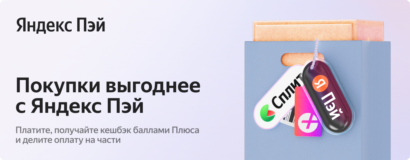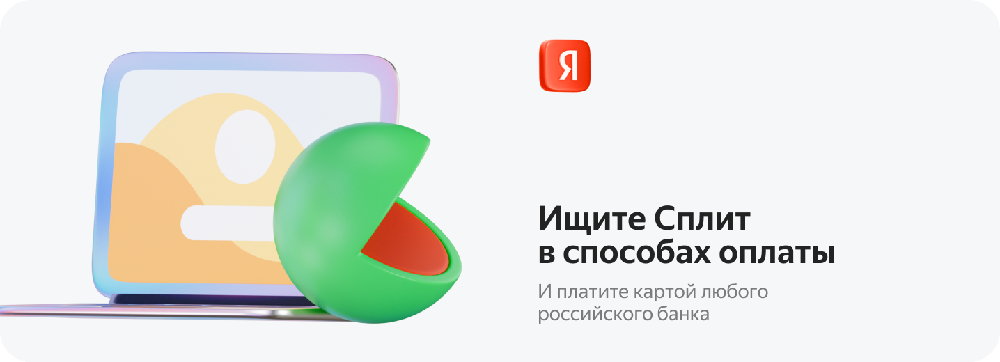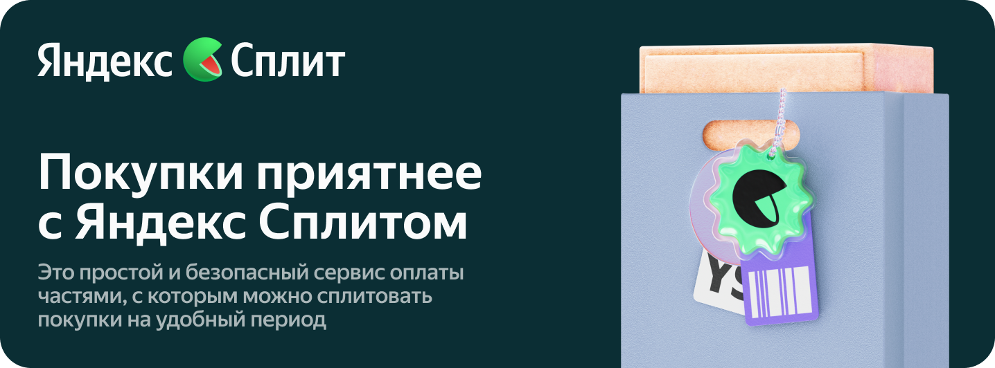 Мы подключили Яндекс Пэй, который поможет быстро оплатить покупку своей картой. А также Яндекс Сплит, с которым можно платить частями в течение 2, 4 или 6 месяцев.
